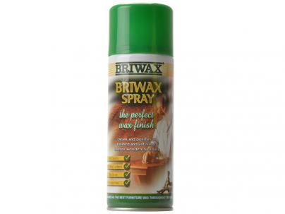£7.03 inc VAT Quantity Add to Basket Briwax spray wax aerosol is simple to apply to wood for a semi-gloss finish on raw timber and a wax shine on finished wood. It makes wood feel silky and smooth, for the best finish on your home.