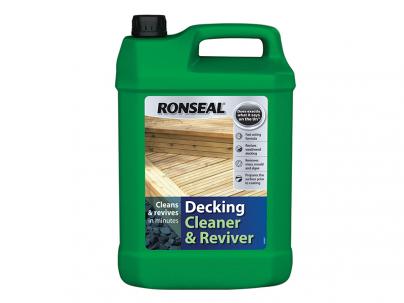 £17.47 inc VAT Quantity Add to Basket Ronseal decking cleaner and reviver is ideal for preparing new wood, or keeping decking clean. It opens the pores of the wood so the finish will adhere and leave a longer lasting finish. 5L ready to use bottle.