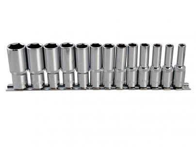 This Blue Spot socket set contains 13 popular 3/8 inch square drive sockets which are made from chrome vanadium steel for strength and durability and which have a deep reach for better access.