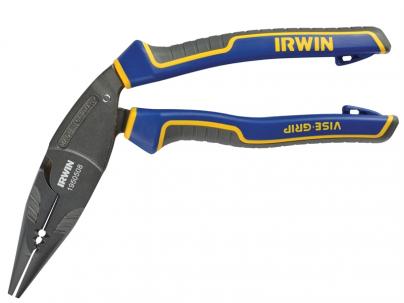 The IRWIN® Vise-Grip® ErgoMulti Long Nose Pliers have a 62° ergonomic angled head for reduced wrist strain and are constructed of high-quality steel. They have been specially coated for superior rust-resistance and longer tool life. The induction-hardened cutting edges are durable enough to cut ACSR, nails, screws and even piano wire without damaging the cutting edge. There is also a built-in wire stripper, that strips 12AWG and 14AWG (solid) wire.