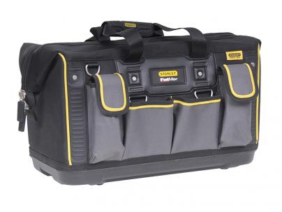 The Stanley FatMax® Open Mouth Rigid Tool Bag provides easy access to tools, whilst the multiple internal and external pockets provide maximum organisation potential. The ergonomic design features a padded shoulder strap and a rubber grip handle for comfortable carrying. The injected polypropylene base protects the bag from moisture and dirt. The bag is made from 600 denier fabric that is hard-wearing, strong and durable, which resists cuts and scratches.